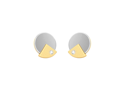 12 mm High Polish Cubic Zirconia Set Stud Earrings in 14kt 2tone Gold Plated Brass of size Weighing Approx 5.6 grams.