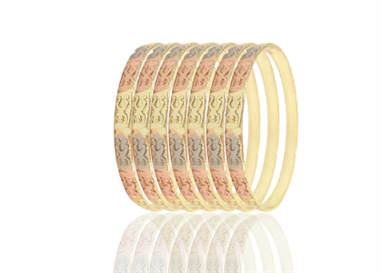 7 PC Semanario Tri Color Bangles , Punched Three Tone Plated Bangles, Semanario Bnagles