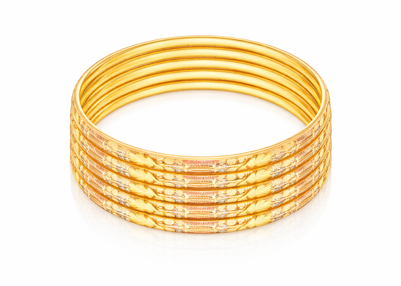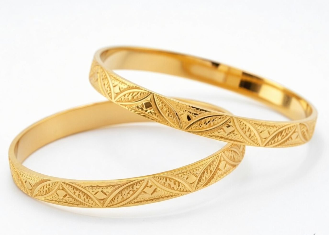 Gold Plated | Machine Cut Bangles Gold Plated Machine Cut Bangles are stylish and affordable jewelry pieces crafted with precision cutting technology to create a sparkling, diamond-like shine. Designed for ladies, these bangles feature a smooth polished finish and detailed machine-cut patterns that enhance brilliance and durability. Made with high-quality gold plating, they offer the rich appearance of real gold while remaining lightweight and comfortable for daily wear, festive occasions, weddings, and parties. Their versatile design pairs beautifully with traditional, ethnic, and modern outfits.