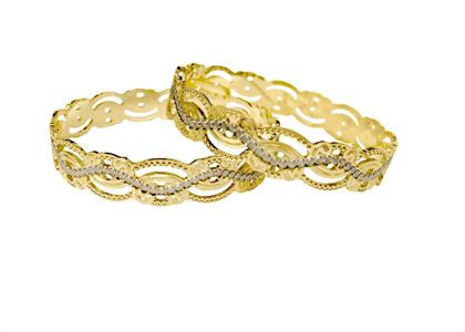 The Designer Two Tone Plated CNC Bangles have bold cut-out and hole designs with wavy borders