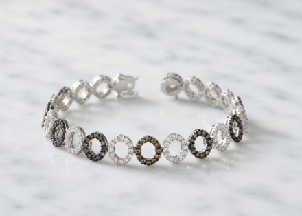 CZ Studded Gemstone Bracelet with Rhodium Plating measuring 10 mm in width Available in sizes from 6Inches to 8.5Inches weighing approx 37.5 grams with High Polish Finish