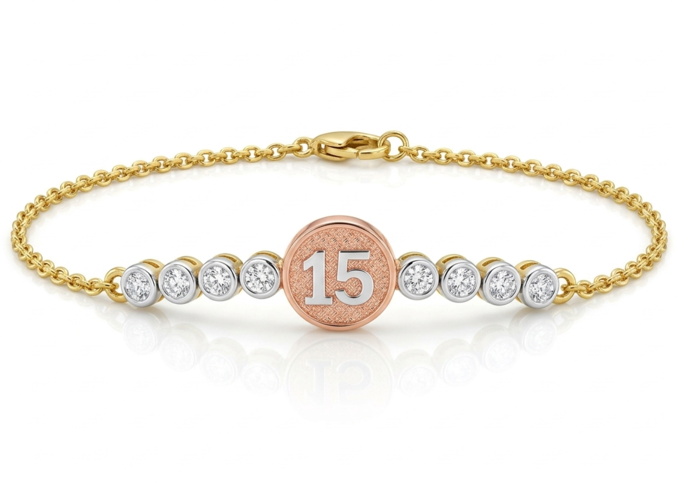 CZ Studded Numerical Fashion Bracelet – Trendy and eye-catching, this bracelet features sparkling CZ stones with a unique numerical design for a modern look. Durable, skin-friendly, and perfect for everyday wear or special occasions.