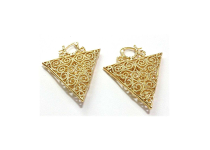 Designer 40 mm Filigree Earrings in 14kt yellow Gold Plated plated Surface Polish finish Weighing Approx 3.7 grams.