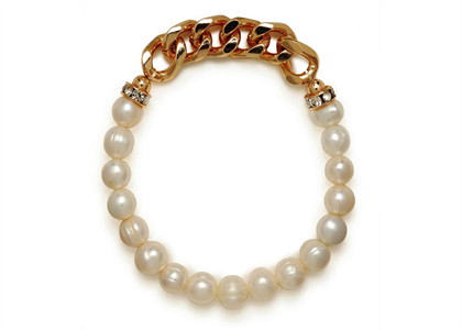 Gold Plated CZ Studded Womens Pearl Bracelet
