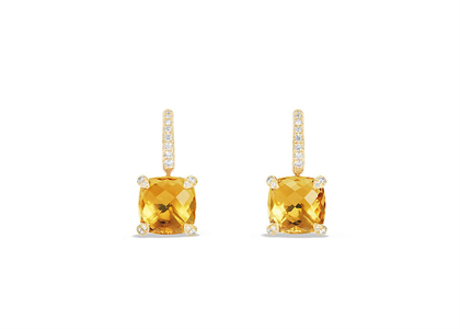 Gold Plated Square Citrine Stone CZ Studded Earring