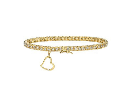 Gold Plated Womens Heart Charm Tennis Bracelet