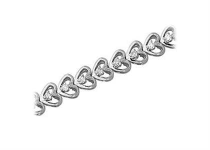 Heart Link Bracelet with Rhodium Plating measuring 10 mm in width Available in sizes from 6" Inches to 8.5" Inches weighing approx 25.43 grams with High Polish Finish