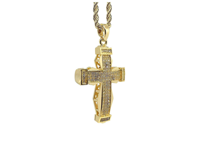 Stunning Hip Hop Stainless Steel Micro Pave Cross Pendant is encrusted with dazzling round stones and measures 45 mm in length by 24 mm in width and 3.20 mm thick