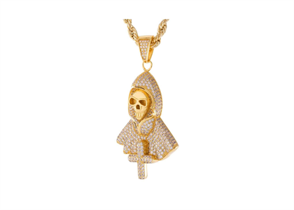 From his ghoulish stare and iconic robe, the Hip Hop Micro Pave Death Pendant carries over 137 CZ Stones and weighs approx 28 grams