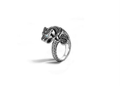 Leopard Mens Ring, with Rhodium Plating, measuring 18 mm in width, Available in all sizes from US-8 to US-14, weighing approx 9.18 grams, with High Polish Finish