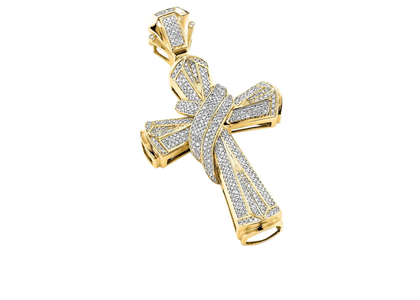 This intricate 14 KT Gold Plated Mens Large Hip Hop Cross Pendant weighs approximately 24 grams and features an iced out bail and a fine gallery at the back