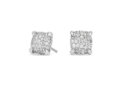 Rhodium Plated CZ Studded Square Shape Stud Earring, with 10 MM High Polish Finish, set in 14 KT, weighing approx 4.20 grams