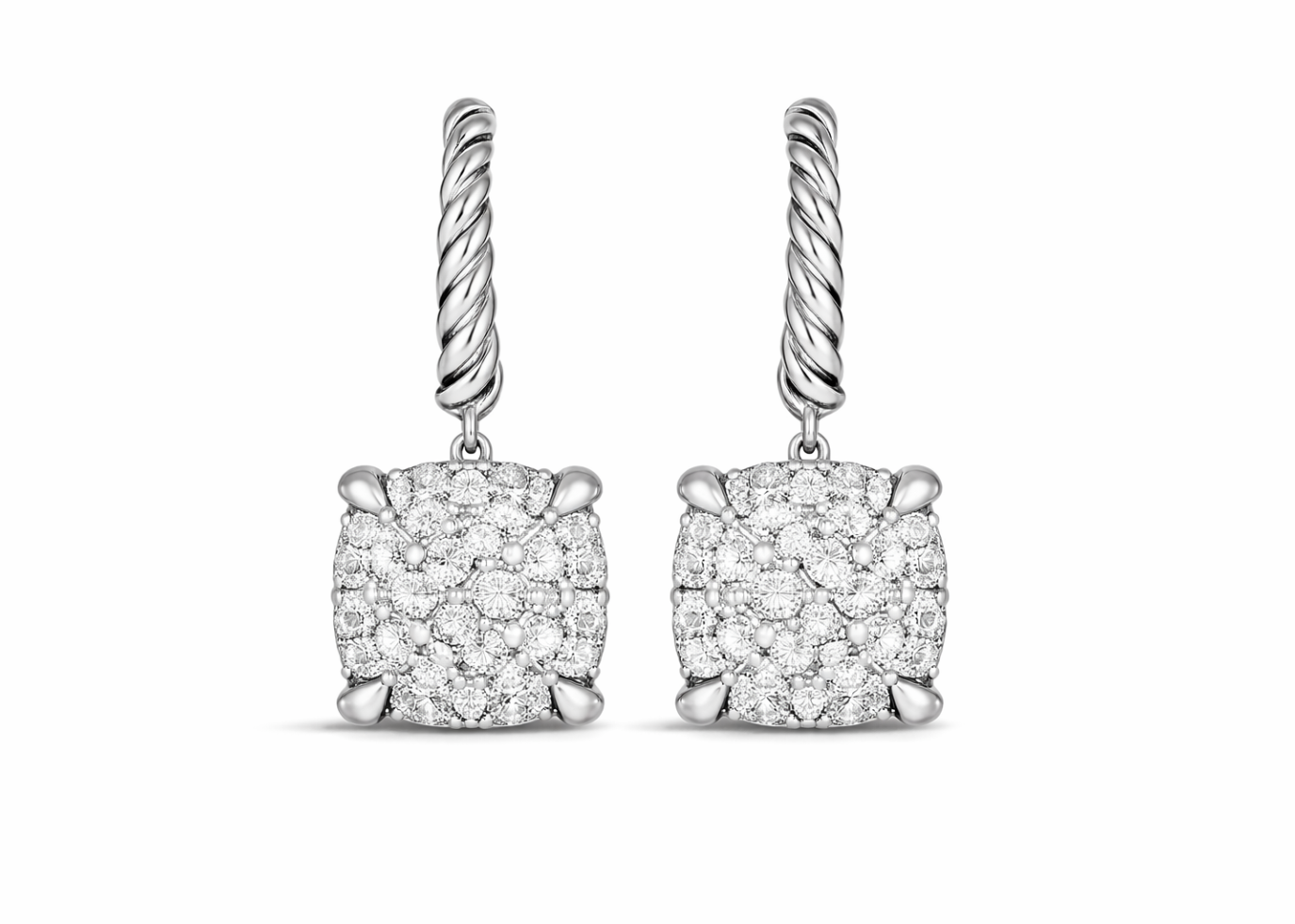 Elegant Rhodium Plated CZ Studded Square Shape Twisted Earrings crafted in 14KT base with a brilliant high polish finish. Measuring 22mm in length and 12mm in width, these statement earrings feature 72 white round-cut cubic zirconia stones for radiant sparkle and modern sophistication.