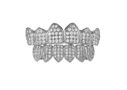 Rhodium Plated Micro Pave Top and Bottom Grillz