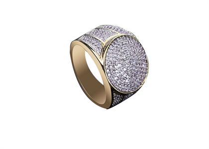 Big Round Bling Ring is micro paved with lots of clear round CZ's stones for a stunning shine, coated with Gold Tone finish over heavy base metal