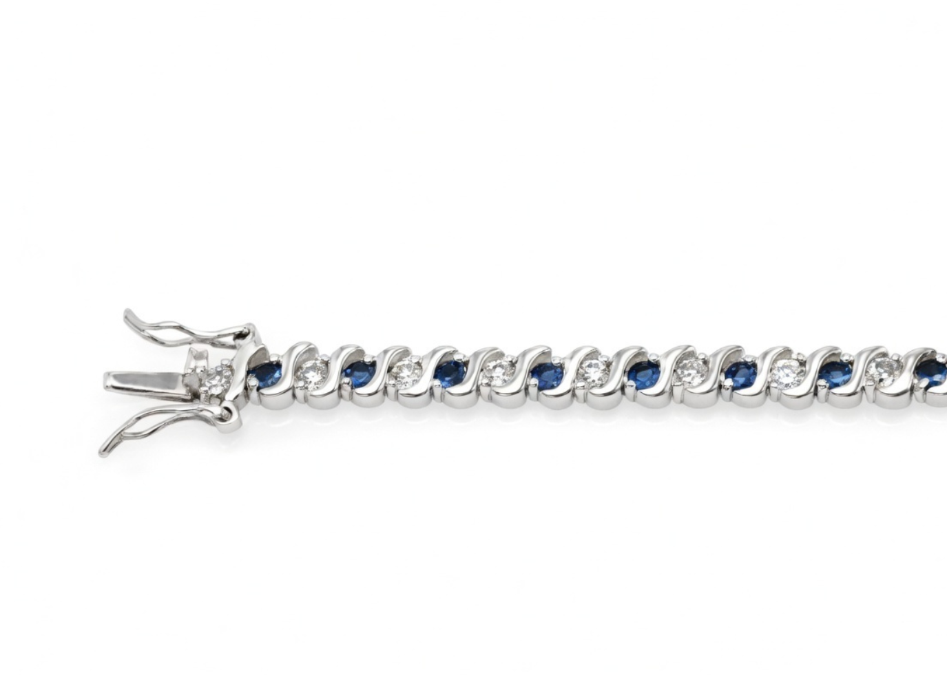 Silver Plated CZ Studded Blue Sapphire Tennis Bracelet,with 6mm width,weighing approx 9.16 grams,Available in sizes from 6" Inches to 10.5" Inches,with High Polish Finish