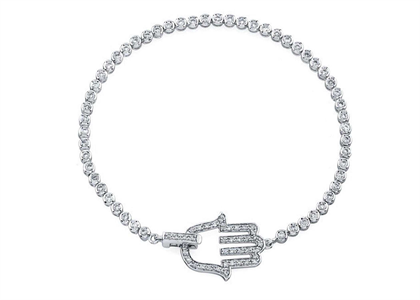 Silver Plated CZ Studded Hamsa Bracelet, with 20 mm width, weighing approx 11.55 grams, Available in sizes from 6" Inches to 8.5" Inches, with High Polish Finish