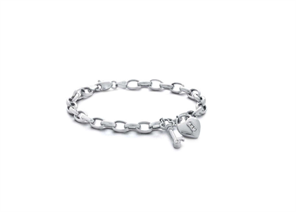 Silver Plated CZ Studded Lock and Key Charm Bracelet