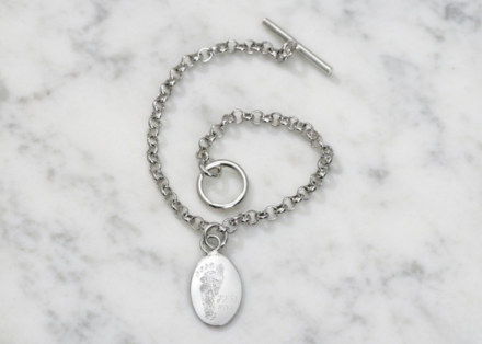 Silver Plated Mens Footprint Toggle Charm Bracelet