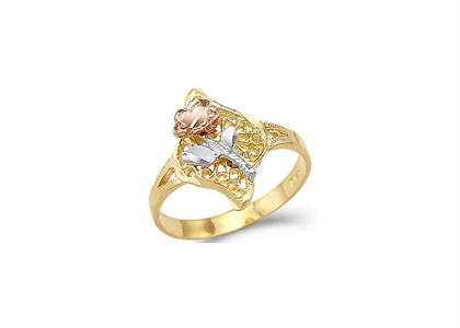 Three Tone Plated Filigree Flower Ring