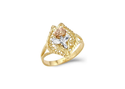 Three Tone Plated Filigree Flower Ring with 22 MM width, Available in US# 4 to US# 8