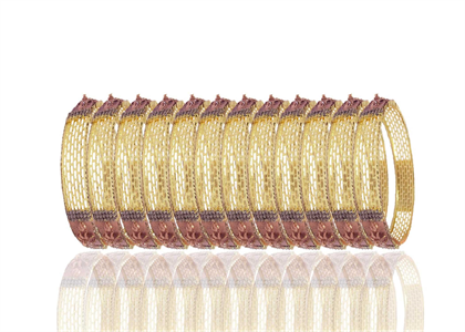 Three Tone Plated Gallery Bangles, with 15 MM width, set in 14 KT, weighing approx 15.55 grams