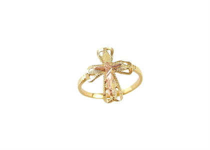 Two Tone Plated Cross Mother Mary Ring