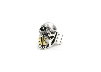 Two Tone Plated CZ Studded Dollar Skull Mens Ring