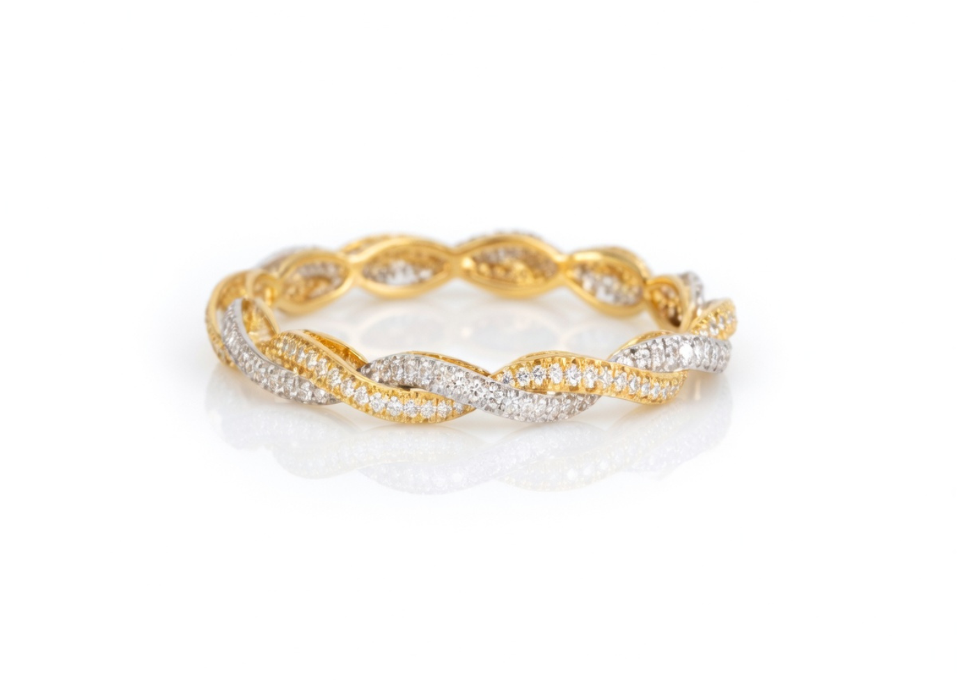 Beautifully Classic 6.5 mm Twisted Bangles crafted in 14kt 2tone Gold Plated Brass Weighing Approx 13.5 grams