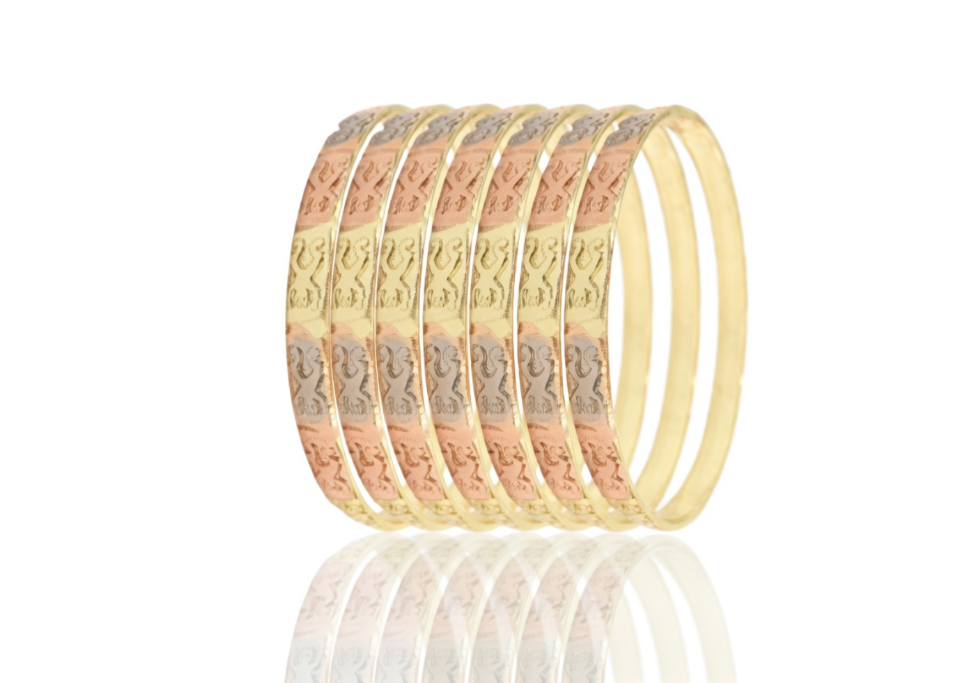 7 PC Semanario Tri Color Bangles , Punched Three Tone Plated Bangles, Semanario Bnagles
