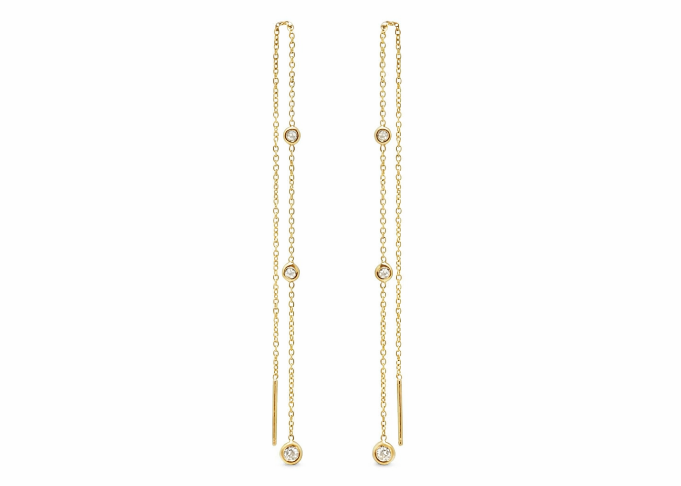 CZ Studded Bezel Threader Earrings
