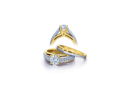 Bridal Ring with Two Tone Plating measuring 7 mm in width Available in sizes from US- 4 to US- 7 1/2 weighing approx 7.66 grams with High Polish Finish