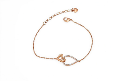 CZ Studded Heart Bracelet with Rose Gold Plating measuring 18 mm width Available in sizes from 6" Inches to 8.5" Inches weighing approx 4.4 grams with High Polish Finish