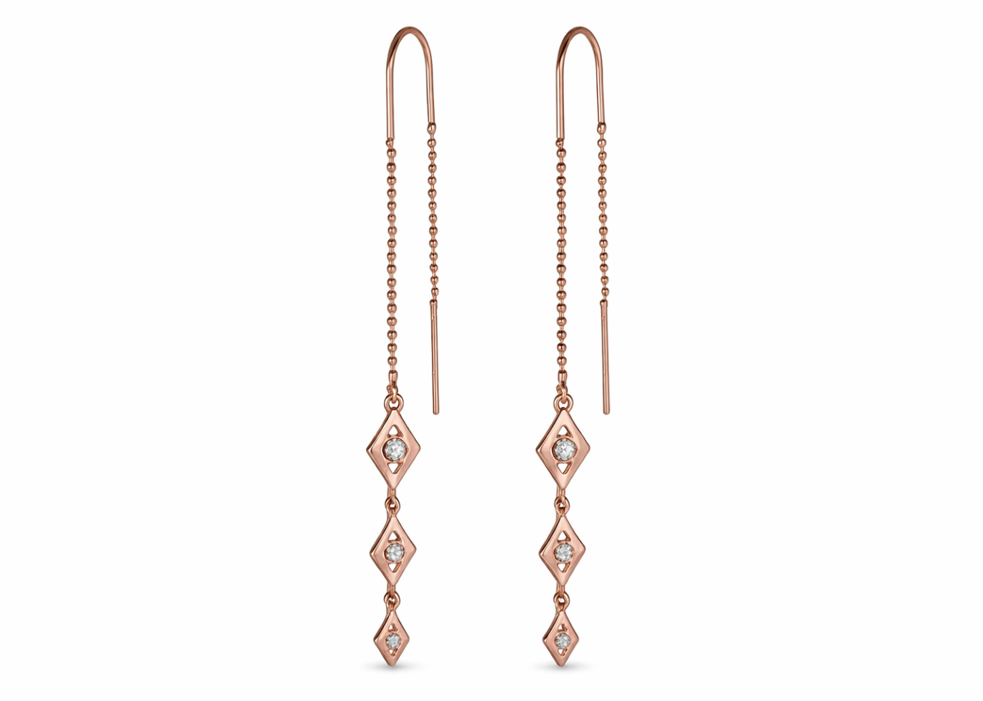 Inspired by Boho's sophisticated style, this cz studded kite threader earring is made of Rose Gold Plating, and it is easy to wear because it is light weight.