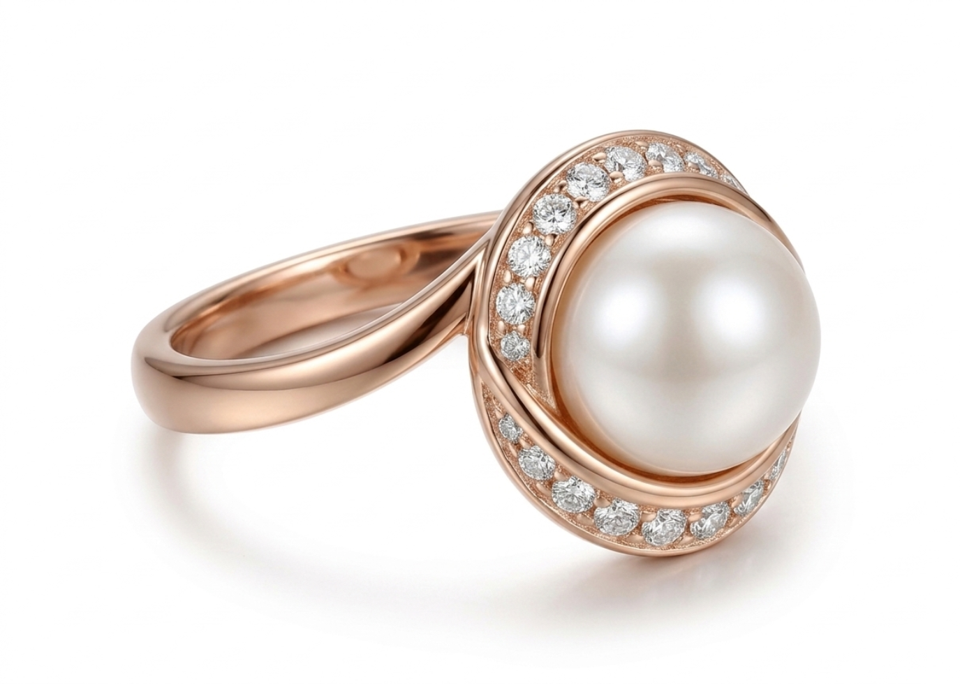 CZ Studded Pearl Ring with Rose Gold Plating measuring 12 mm in width Available in sizes from US- 4 to US- 7 1/2 weighing approx 4.86 grams with High Polish Finish