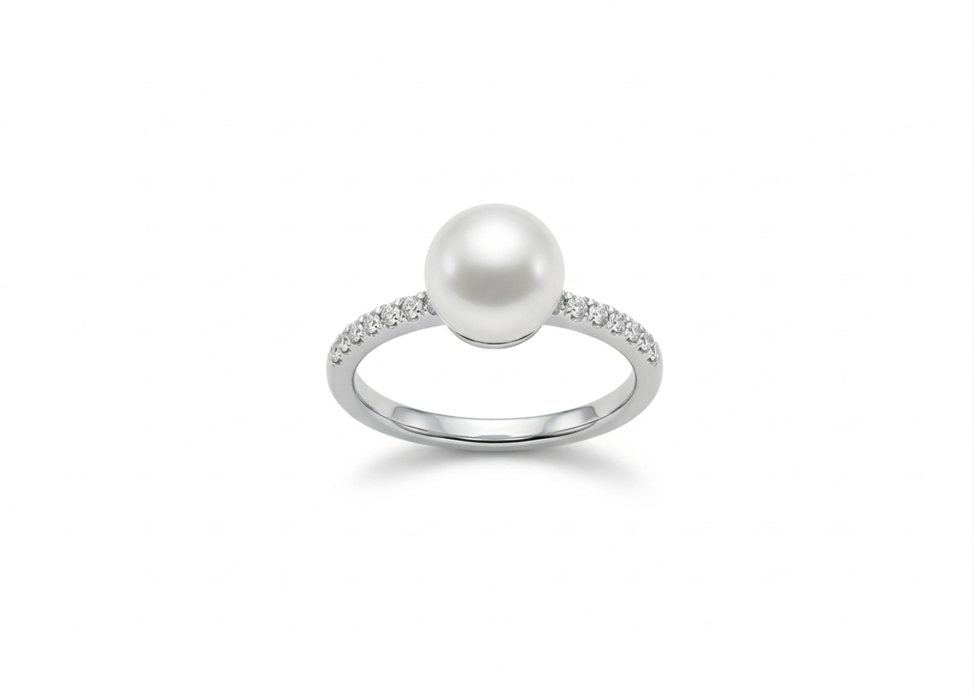CZ Studded Pearl Ring with Silver Plating measuring 8 mm in width Available in sizes from US- 4 to US- 7 1/2 weighing approx 4.53 grams with High Polish Finish