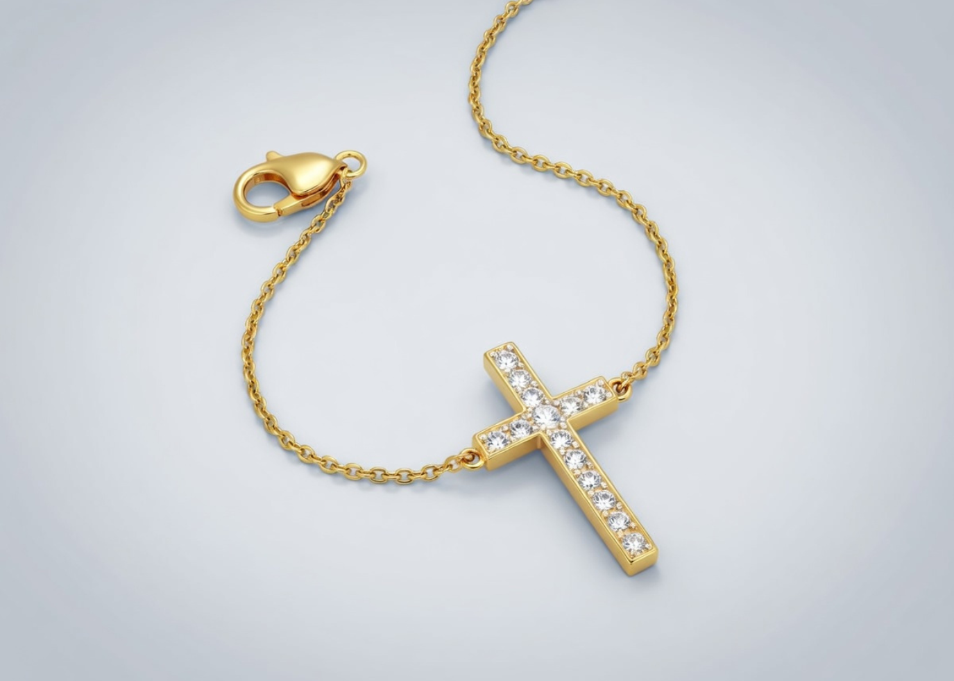 CZ Studded Sideways Cross Fashion Bracelet – Elegant and trendy, this bracelet features a sparkling CZ-studded sideways cross design for a modern, stylish look. Durable, hypoallergenic, and perfect for daily wear or special occasions.