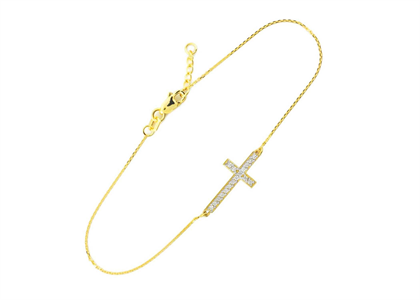 Embellish your wrist with this cute Sideways Cross Bracelet, delightfully crafted from the finest 14 KT Rhodium Plated and finished with a perfect high polish