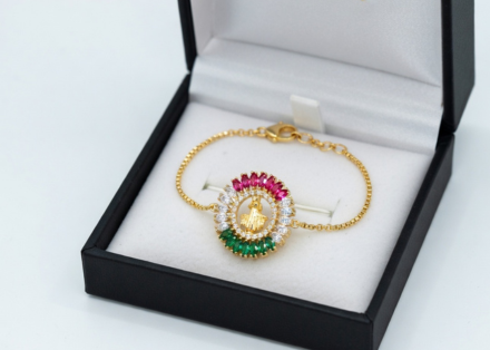 Gold Plated CZ Multi color Saint Jude Bracelet