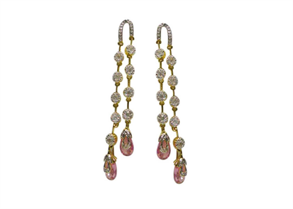 Gold Plated CZ Studded Gemstone Drop Earring, with 45 mm length, weighing approx 7.02 grams, with High Polish Finish