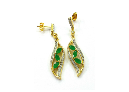 Gold Plated CZ Studded Gemstone Long Dangle Earring