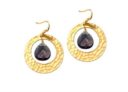 Gold Plated Gemstone Texture Dangle Earring, with 50 mm length, weighing approx 4.53 grams, with High Polish Finish
