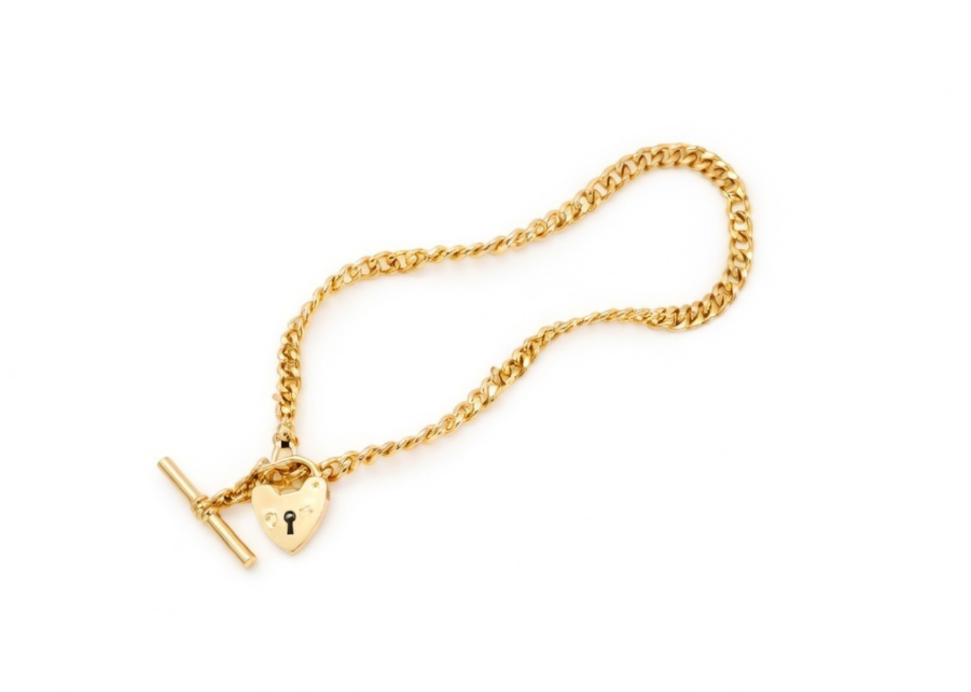 Gold Plated Mens Toggle Heart Curb Bracelet, with 20 mm width, weighing approx 38.44 grams, Available in sizes from 8" Inches to 10.5" Inches, with High Polish Finish
