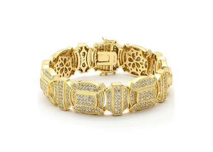 Gold Plated Womens Hip Hop Bracelet, with 15 mm width, weighing approx 55 grams, Available in sizes from 6" Inches to 8.5" Inches, with High Polish Finish