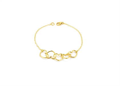 Heart Bracelet with Gold Plating measuring 15 mm in width Available in sizes from 6" Inches to 8.5" Inches weighing approx 5.56 grams with High Polish Finish