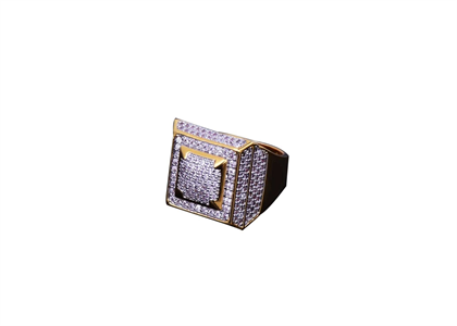 Iced Out Ring is a great looking ring for men featuring classy Rectangle design in Gold Plating and fully micro paved in round CZ's including on all 4 sides of the ring