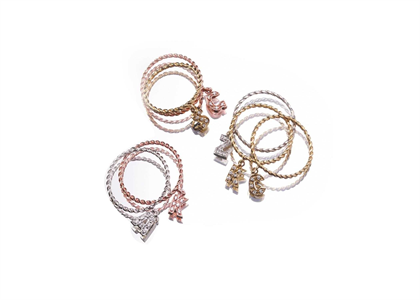 Initial Stack Ring, with Three Tone Plating, measuring 12 MM in width, weighing approx 2.16 grams, Available in sizes from US- 4 to US- 7 1/2, with High Polish Finish