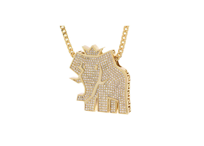 The Jungl Julz Logo Pendant comes donned with iconic elephant logo, it features 14 KT gold plating and includes clear CZ stones that come lined using a micro pave setting