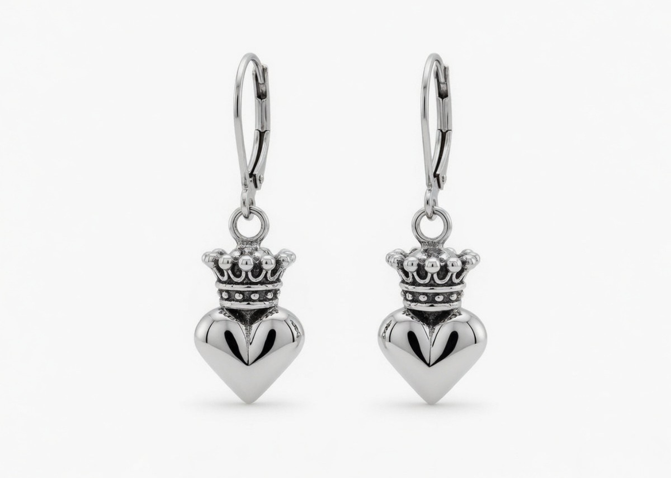 Our Baby Crowned Heart Shape Earrings are crafted from 14 KT, the crown design features cut out and beaded detailing with Rhodium Plated for a glamorous touch.