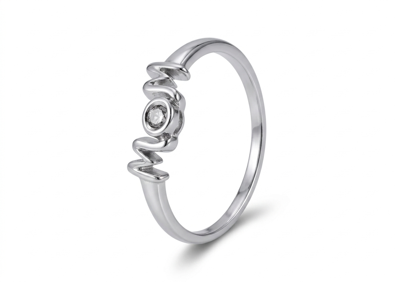 Mothers Day Ring, with Rhodium Plating, measuring 8 mm in width, weighing approx 2.91 grams, Available in sizes from US- 4 to US-7 1/2, with High Polish Finish